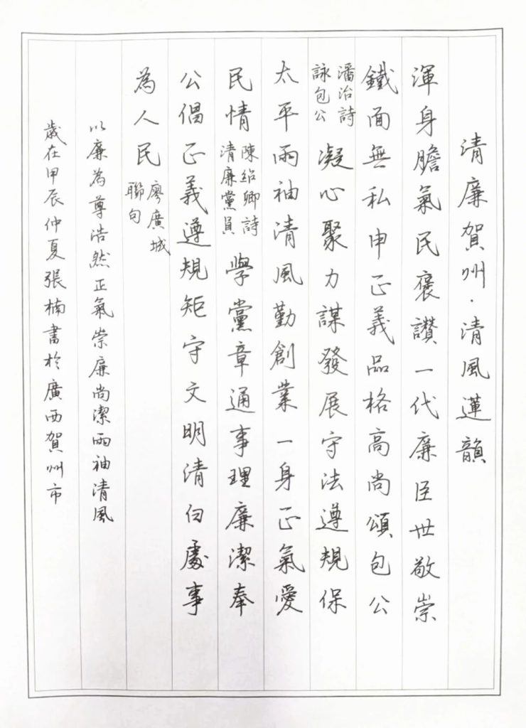 线上展览|“清廉贺州·清风莲韵”贺州市清廉文化优秀作品展(四):诗词楹联(含硬笔抄录)