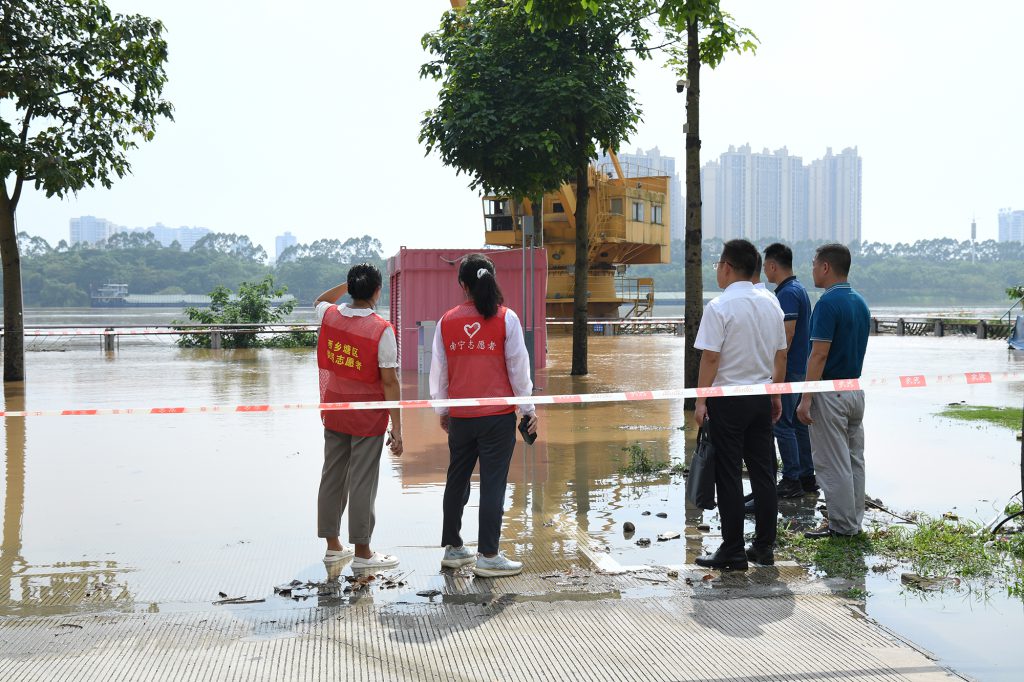 自治区纪委监委第四监督检查室与南宁市纪委监委、西乡塘区纪委监委组成“室地”联合督导组,直奔防汛形势最严峻的地段开展监督检查。在民生码头、上尧码头,一些市民避开巡查点围观洪水,联合督导组立即督促城区立行立改、有序管控。