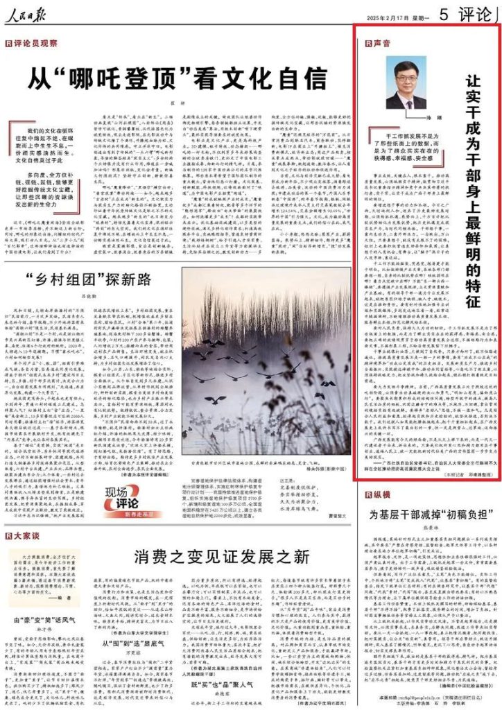 《人民日报》“声音”栏目刊发陈刚讲话:让实干成为干部身上最鲜明的特征