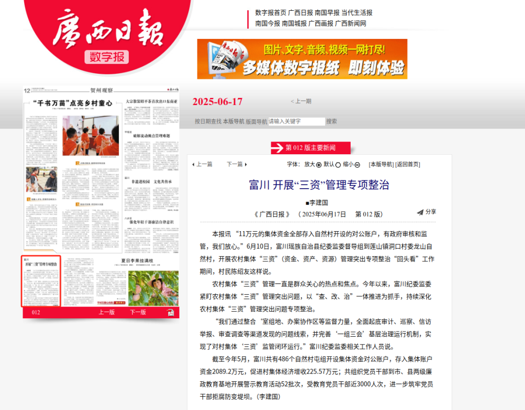 【广西日报关注富川】富川 开展“三资”管理专项整治