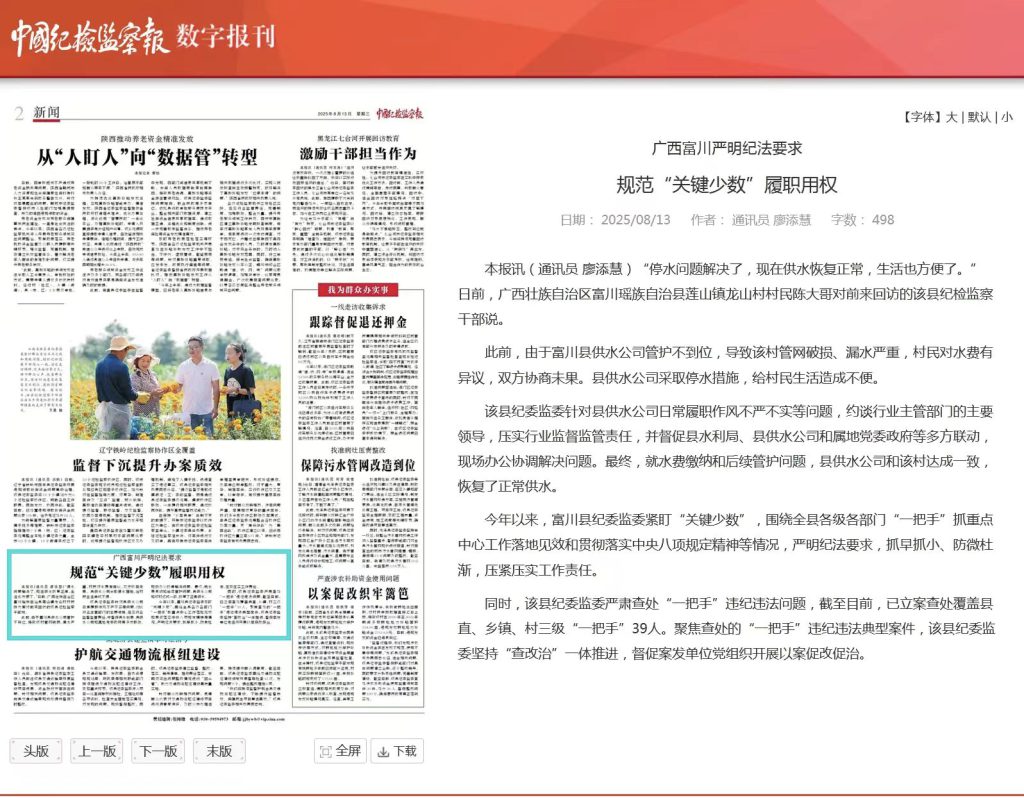 【中国纪检监察报关注富川】广西富川严明纪法要求规范“关键少数”履职用权