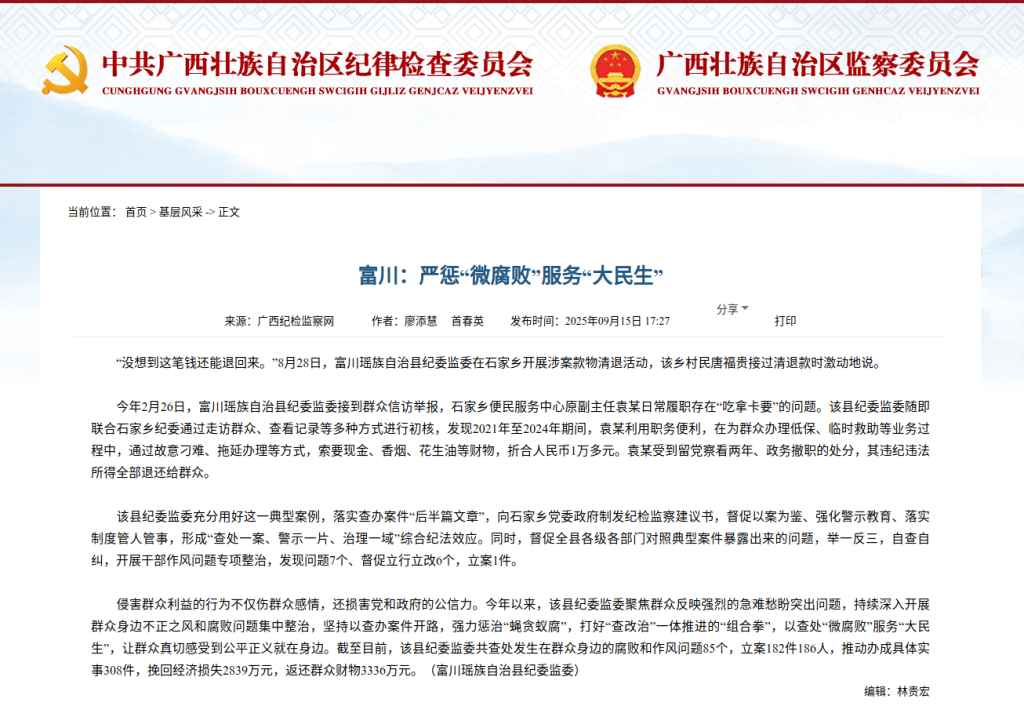 【广西纪检监察网关注富川】富川:严惩“微腐败”服务“大民生”