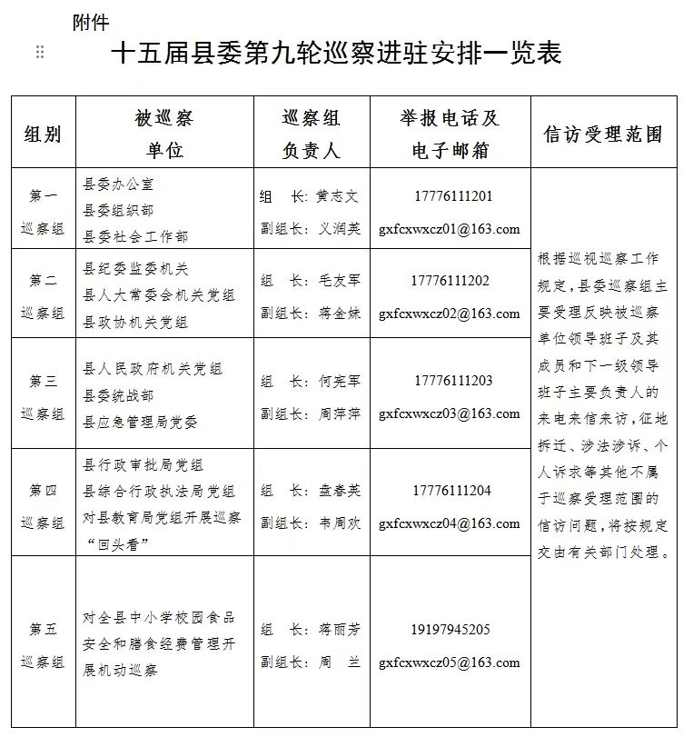 巡察期间,巡察组将通过听取工作汇报、个别谈话、受理信访举报、走访暗访、查阅资料或账目等方式广泛听取意见,深入了解情况。欢迎广大党员、干部、群众向巡察组如实反映问题、提供线索。