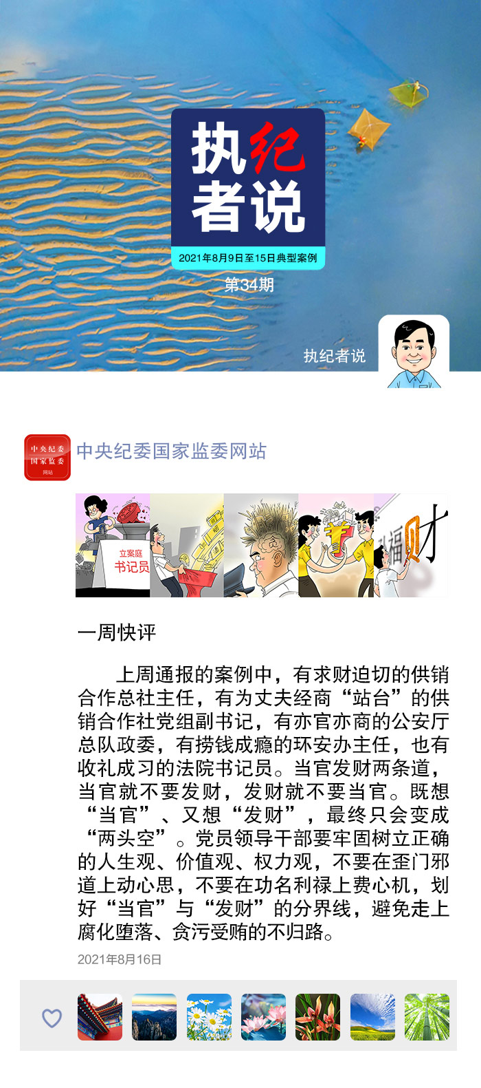 执纪者说 | 第34期 2021年8月9日至15日典型案例