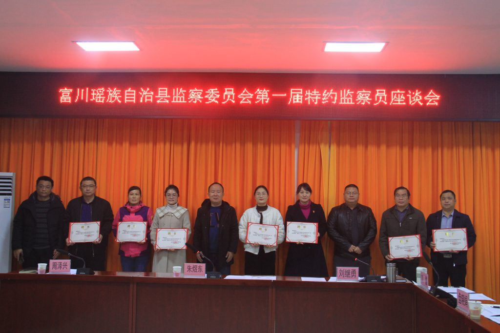 会议宣读了《富川瑶族自治县监察委员会关于聘请第一届特约监察员的决定》,朱煜东同志为10名特约监察员颁发聘书,并对特约监察员工作提出了要求。