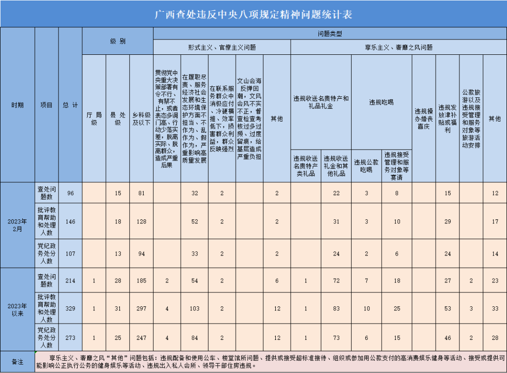 2023年2月广西查处违反中央八项规定精神问题96起